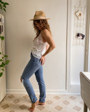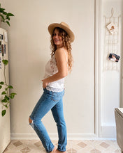 White lace slinky tank with tiny flower