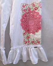 Bright pink tulip hanky with bright pink circle doily layered on top