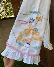 Large vintage table runner on each side of leg and back detail