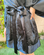 Silky mini robe with swirly pattern detail and large silky boarder