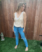 Pale pink lacy tank with flower and leaf beaded embroidery