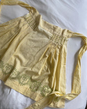 Bright yellow and white gingham with green x stitch embroidery